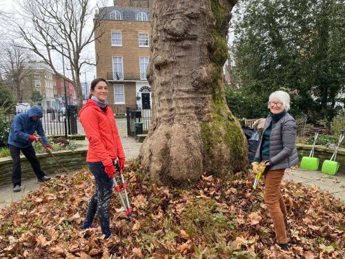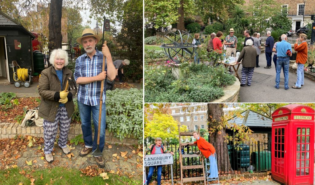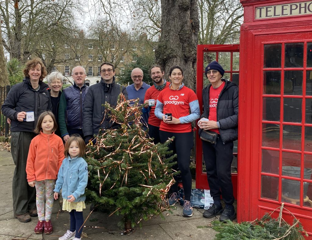 A big thank you to the more than 20 volunteers who turned up last Saturday to give some love to Canonbury Square gardens. We celebrated the recent adoption of the historic phone box by installing inside it a Christmas tree decorated by Olivia and Diane. Frances and Steven led a pruning group while Ian and our lovely Good Gym volunteers planted new shrubs. The rest of the team, including our local councillor Nurullah, swept up leaves and litter picked while Misha harvested bags of beautiful leaf mould with which we will mulch the flower beds.