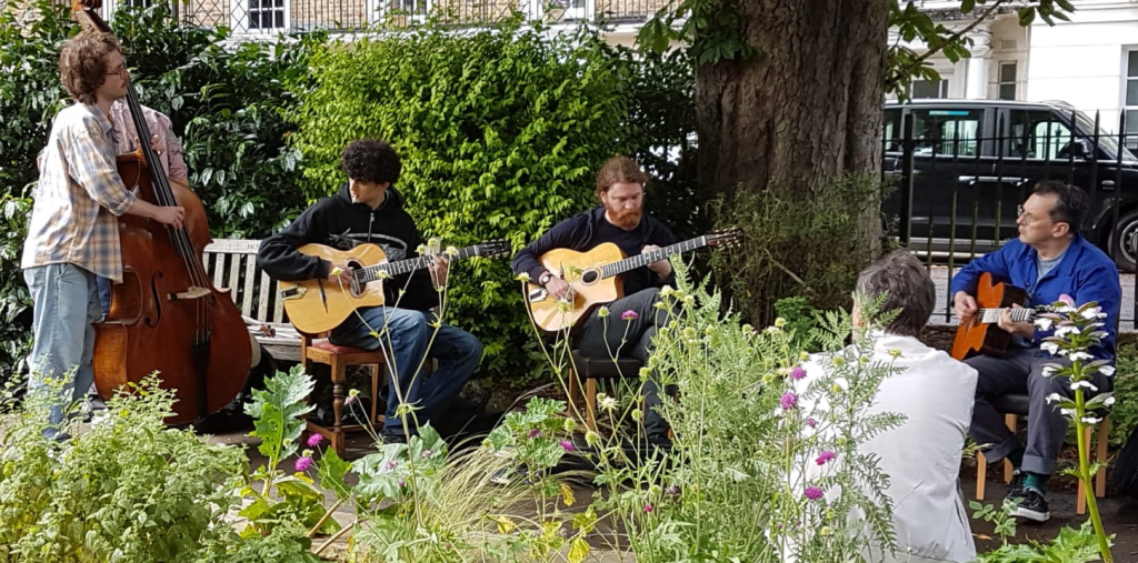 Friends of Canonbury Square hosted a wonderful tea party on Saturday 15th June bringing neighbours together and, with Cornelius Corkery and his Gypsy Jazz ensemble, celebrating our precious green space.