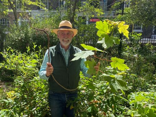 In the East Garden a group of volunteers pruned sage, rosemary and rose bushes. We left bundles of herbs for our neighbours and visitors to the Square to take home.