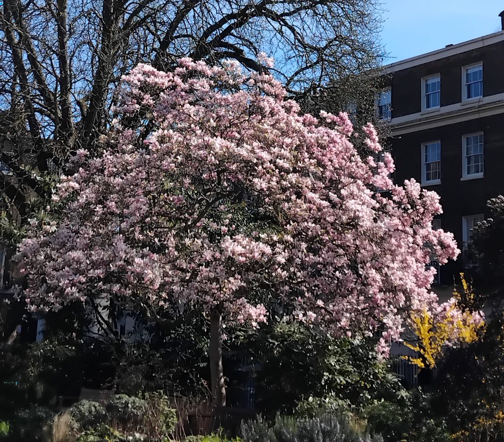 The turf had been laid and the planting in the raised beds is starting to show its spring growth. With the Magnolia in full flower, things are looking beautiful in Canonbury Square’s East garden.