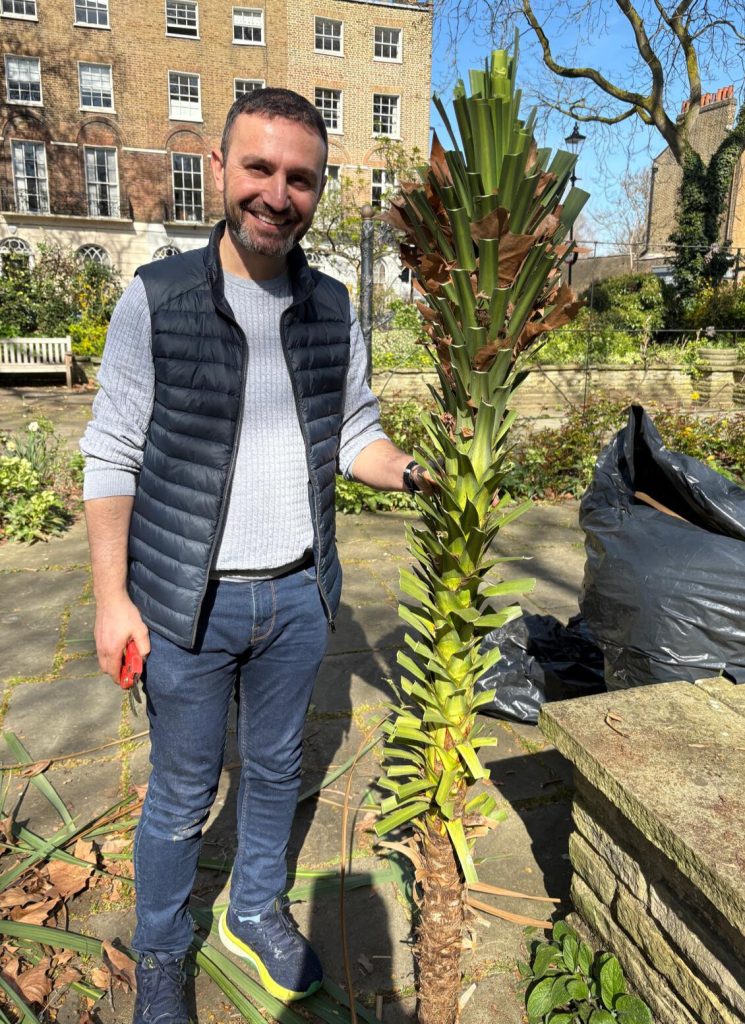 A team of seven worked on tasks in the West Garden, namely: thinning sedges, cutting back cordylines and pruning the vigorous acanthus to allow the Tom Thumb pittosporum to thrive. We were delighted to be joined by Councillor Nurullah Turan. A second smaller group focused on the raised beds in the East Garden, checking on new plants’ progress, weeding and pruning.
