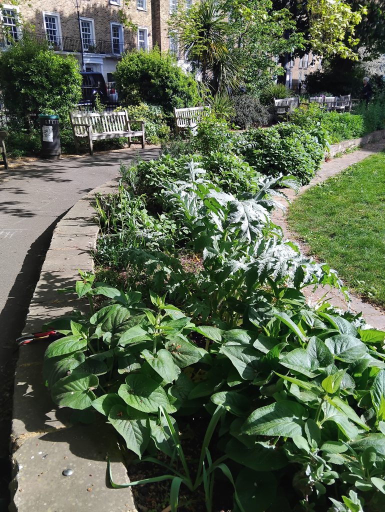 Fifteen volunteers joined us for our May session in the public gardens of Canonbury Square. We started work in cool and overcast conditions but soon after work started we were rewarded with bright sun.